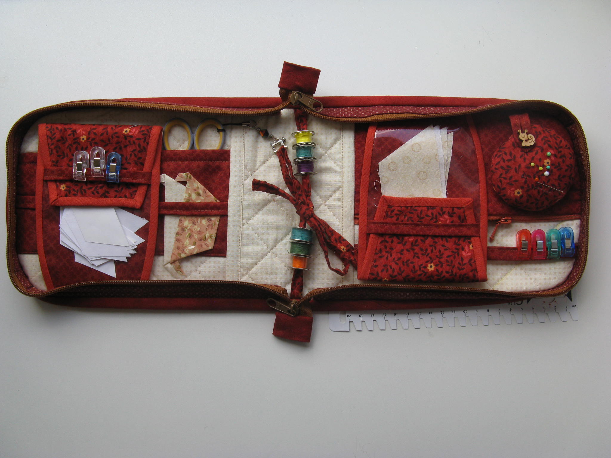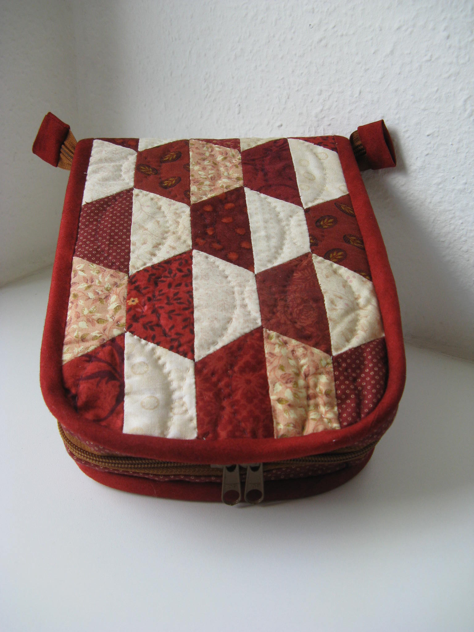 Diese Projektmappe hat mit dem klassischen Jacobs-Ladder-Block nicht nur ein schönes Outfit. Die innenliegenden Seiten aus dünnem Vlies schaffen Ordnung und schützen alle Zuschnitte vor dem Ausfransen. Eine Innentasche hält Platz für Anleitungen und Schablonen bereit. Ist die Mappe geschlossen kommt sie auf eine Größe von ca. 39 x 39 cm.