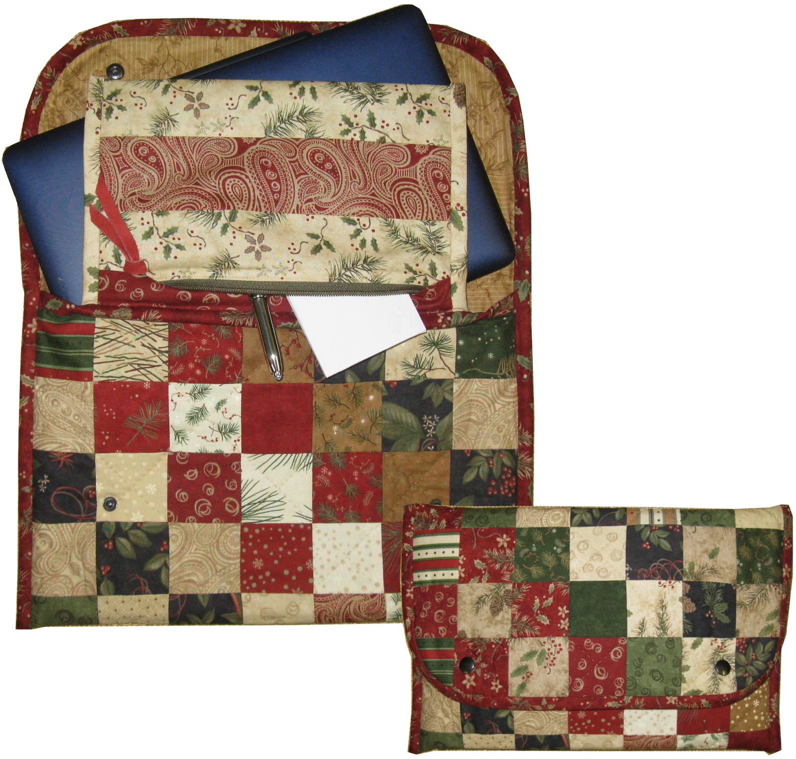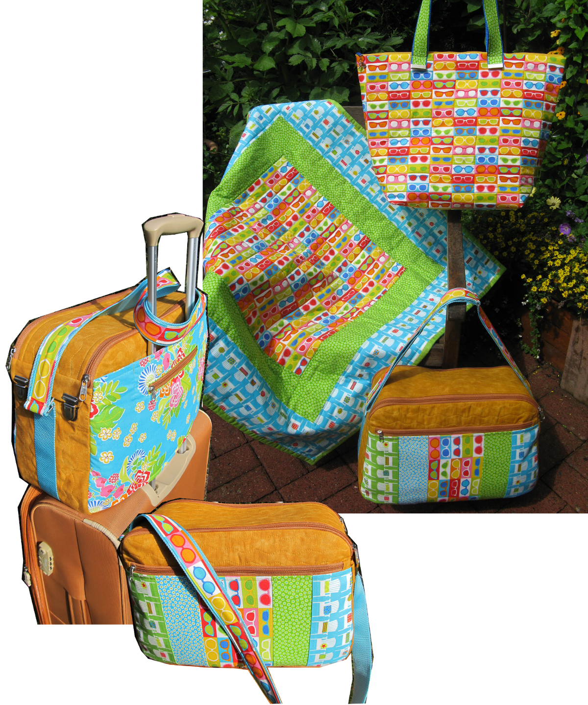 Nur zwei Stoffe zu je 7 Quadraten sind nötig, um die Außenseite dieser Mehrzwecktasche zu nähen.