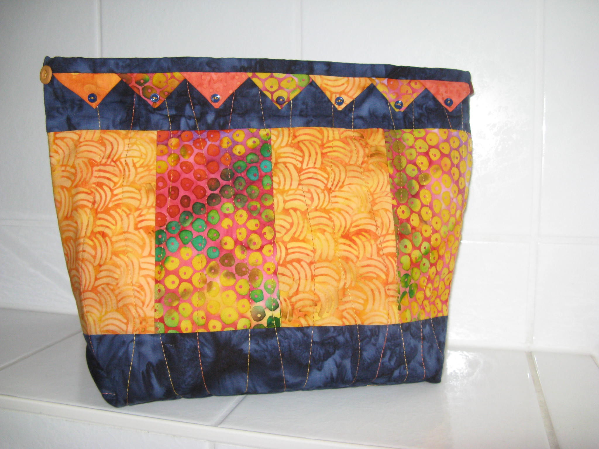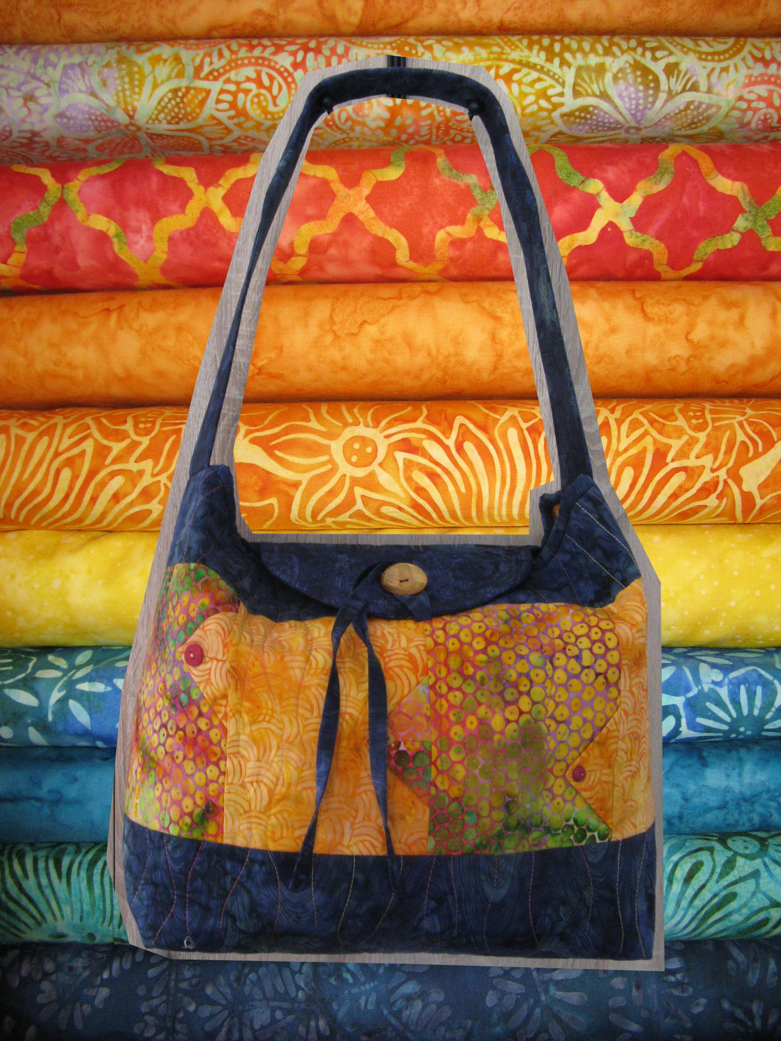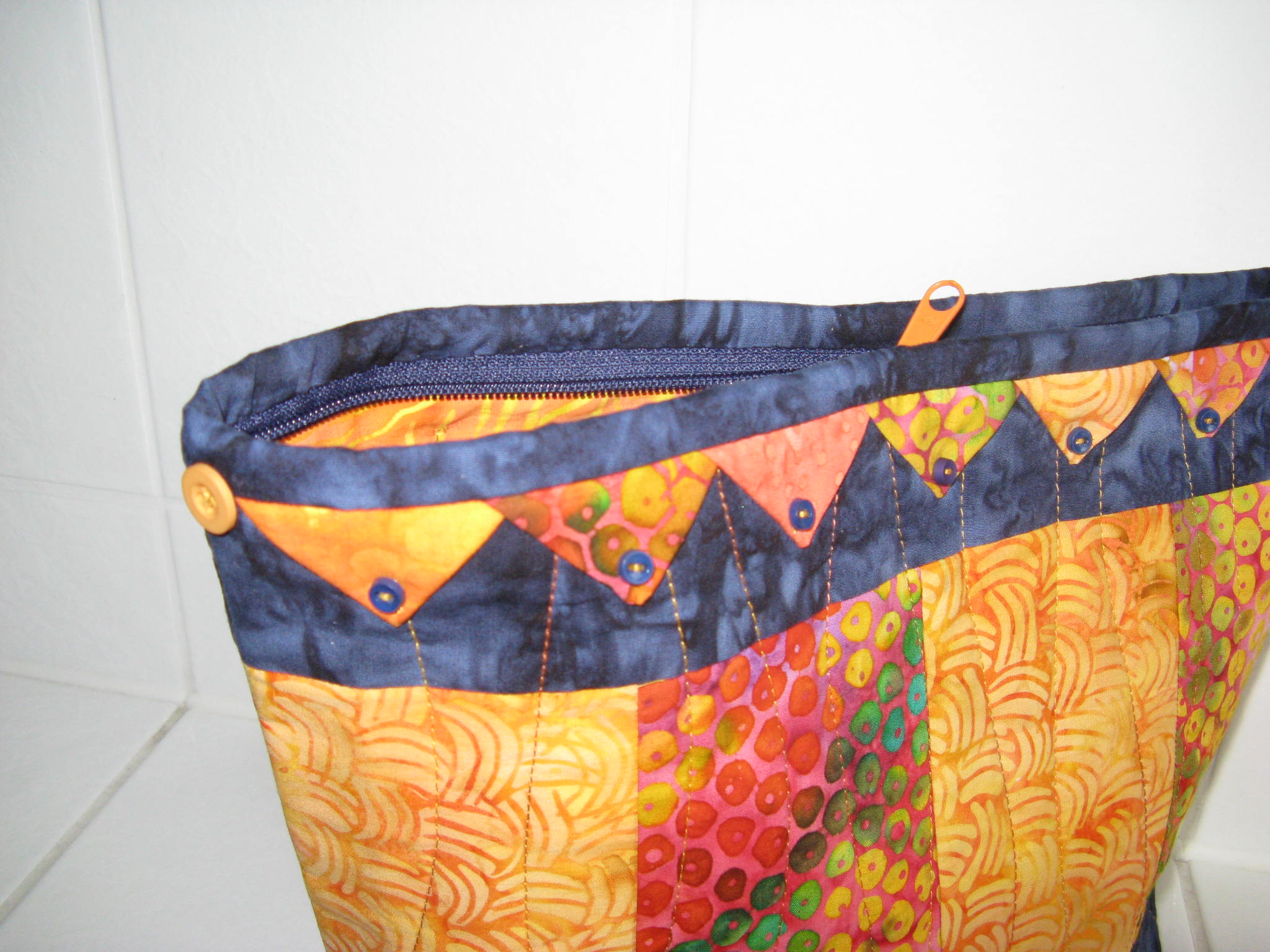 Geräumig, mit diversen Innentaschen und einem komfortablen Henkel ausgestattet, präsentieren sich auf deren Außenseite die beliebten Batiken als wunderschöner Blickfang.