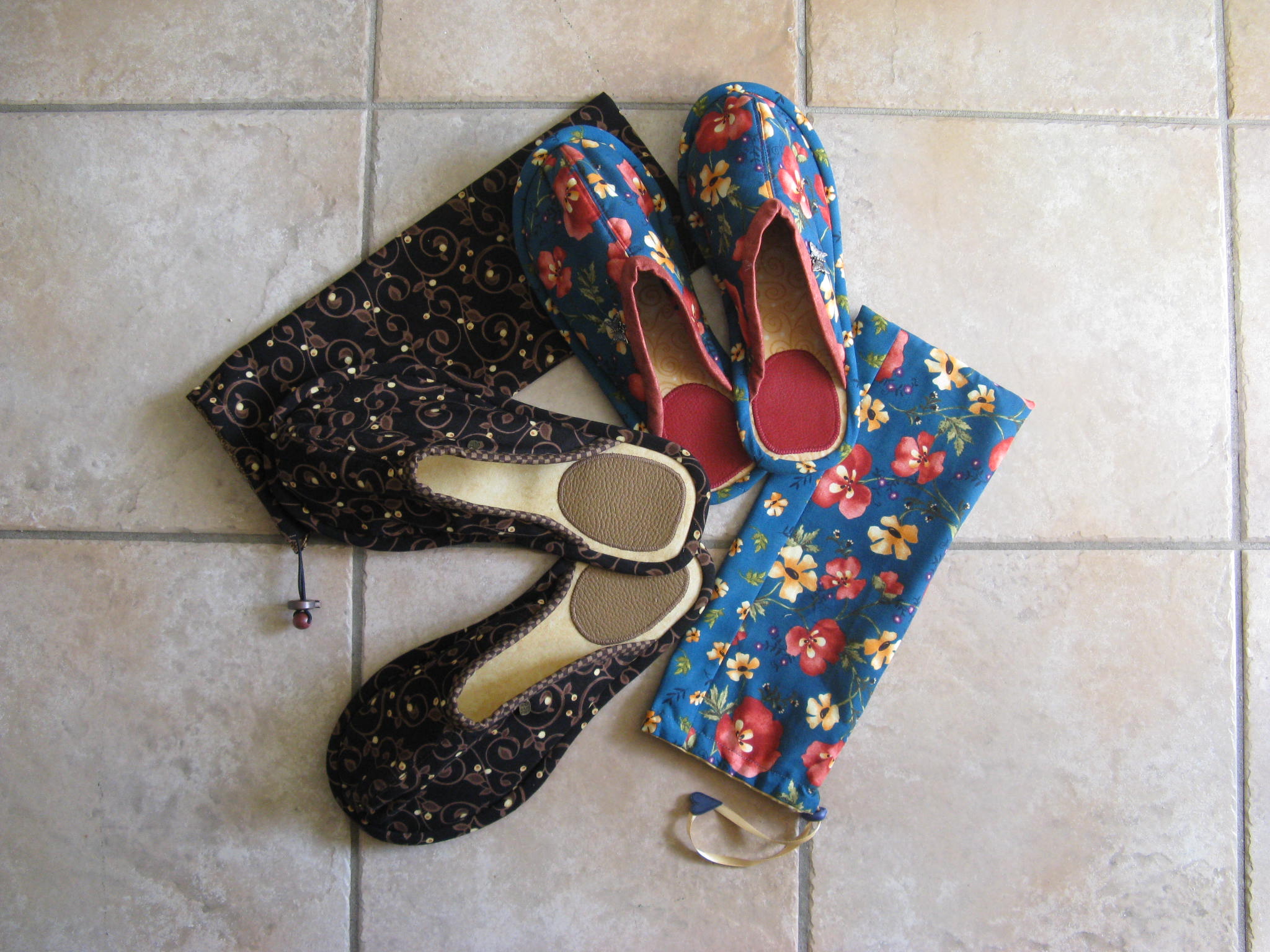 Gästehausschuhe braucht jeder, und wenn sie dazu noch aus schönen Stoffen genäht sind, verleiht man diese besonders gern an liebe Besucher. Für unterwegs verpackt in einen passenden Beutel, nehmen sie in Koffer oder Reisetasche wenig Platz weg.