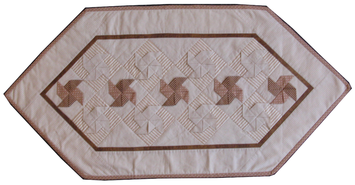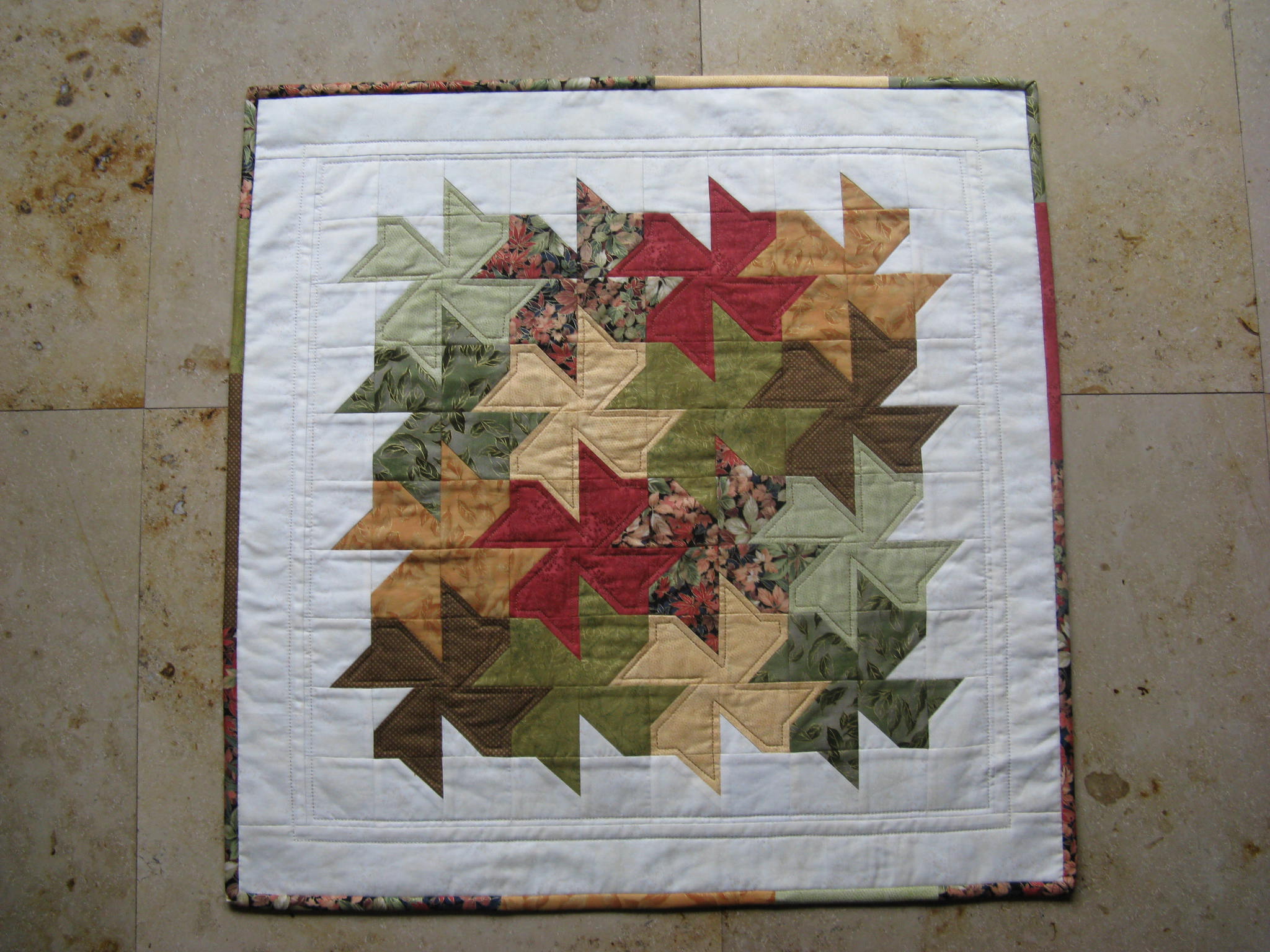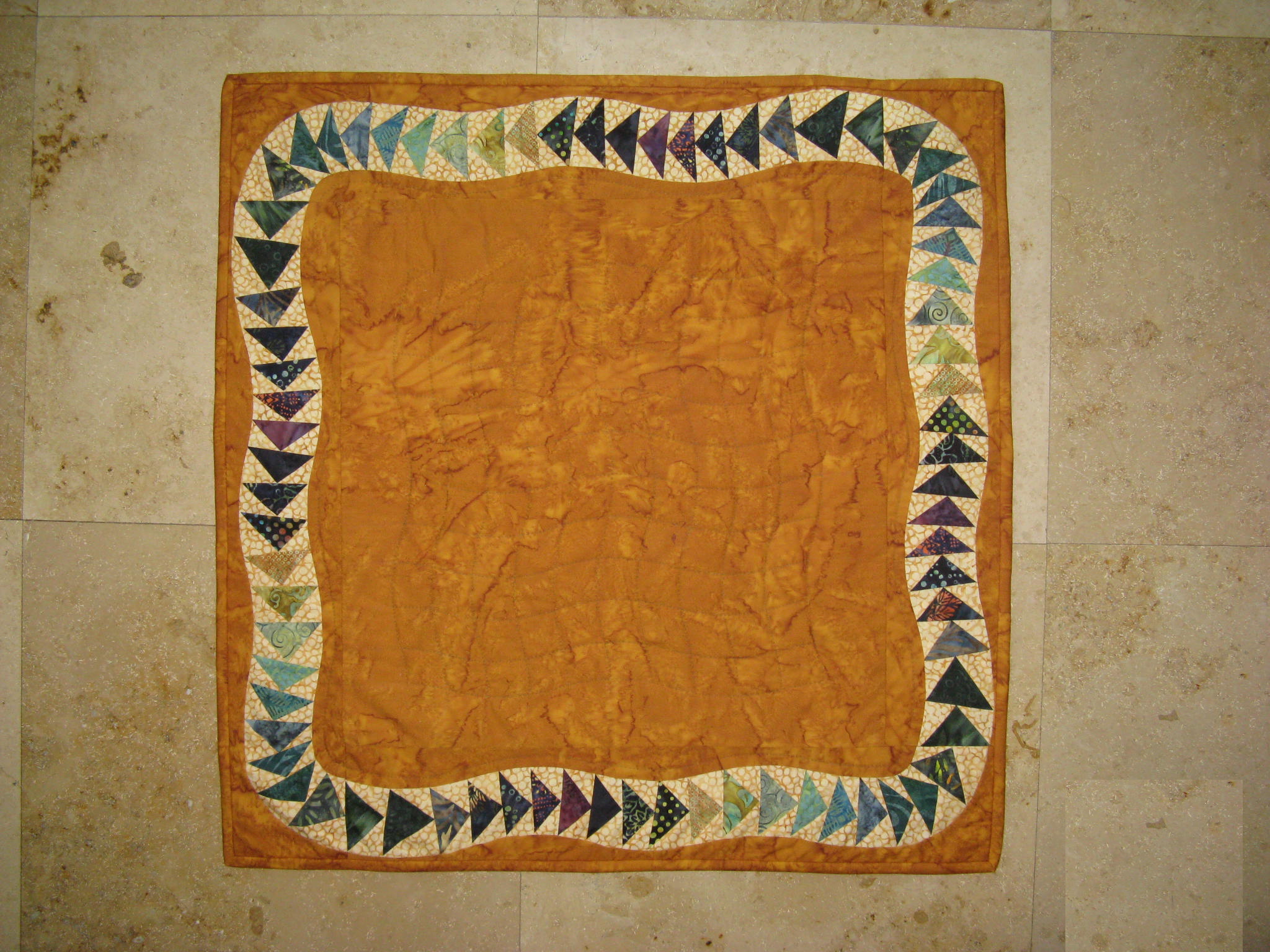 Patchworkerinnen nähen oft tolle Tischwäsche, jedoch meist mit dem besonderen Motiv in der Mitte der Tischdecke. Bei dieser Mitteldecke in der Größe von ca. 80x80 cm kann die Tischmitte dekoriert werden ohne das tolle Patchworkmuster zu verdecken. Die bunten Flying Geese sind nach der PaperPiecingMethode genäht.