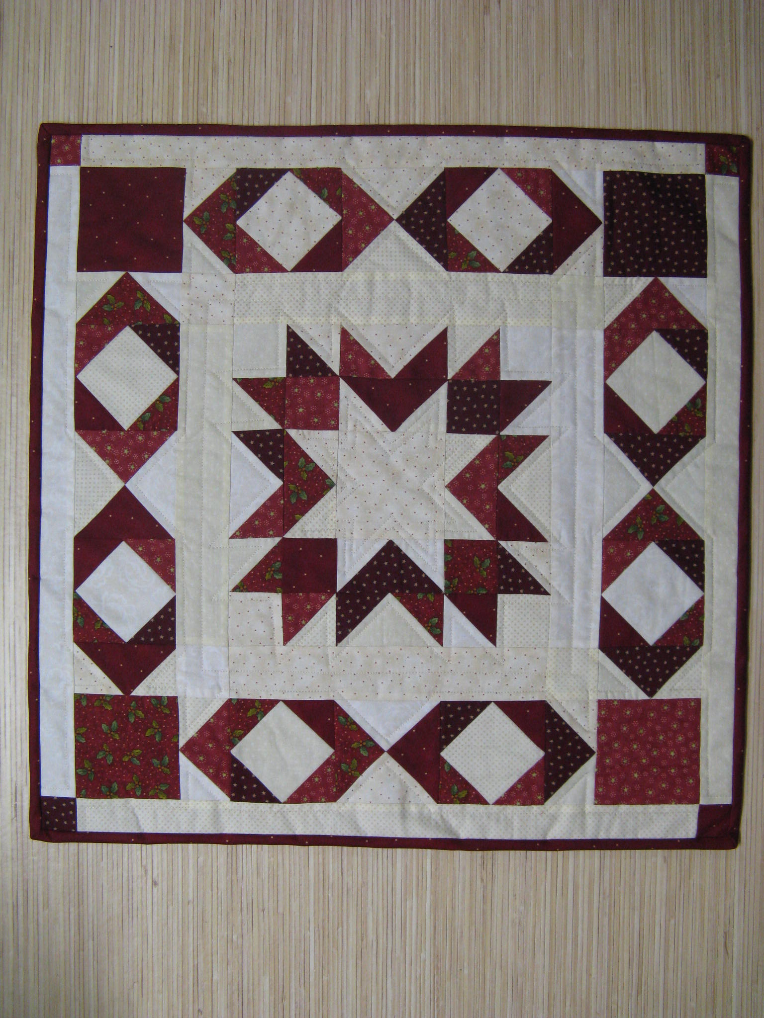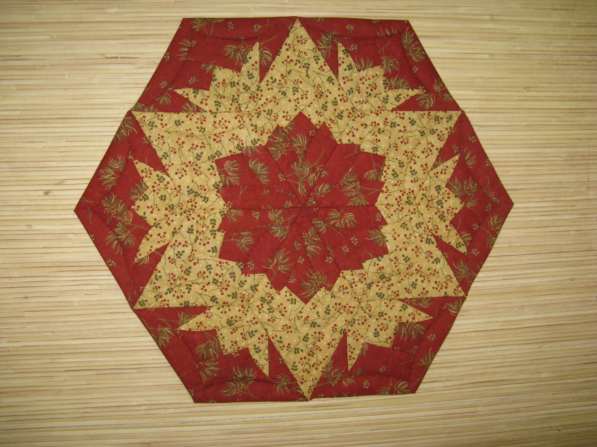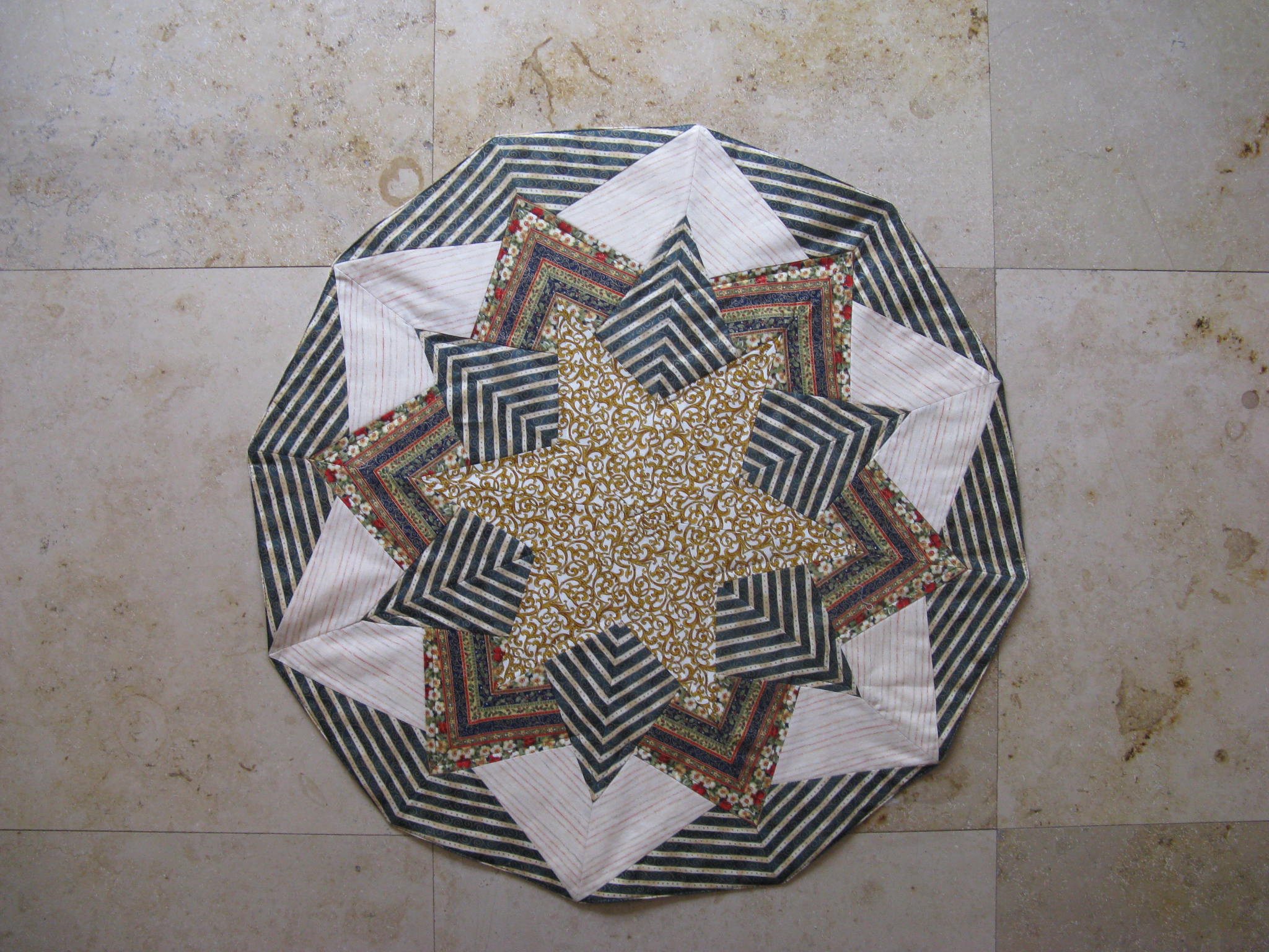 Das Kaleidoscope unter Verwendung weihnachtlicher Stoffe entstand nach einer Nähmethode nach Ricky Tims. Diese Arbeit ist etwas anspruchsvoller und erfordert ein wenig mehr Näherfahrung. Wie unterschiedlich Ergebnisse wirken können, sieht man in diesem Fall auch bei dem Kaleidoscope-Wandbehang unter der Kategorie 'Quilts und Kissen'.